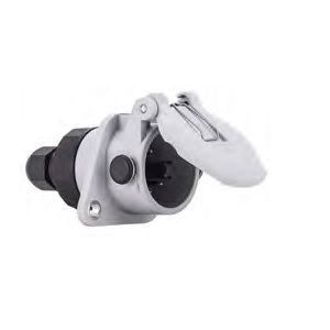 Base Iso25981-2 BA-5959 DFF para sistemas eléctricos de vehículos motorizados. Fabricada en metal y plástico resistente, con tapa protectora abatible para mayor seguridad. Ideal para conexiones eléctricas en entornos exigentes. Diseño compacto y fácil instalación en paredes o paneles.