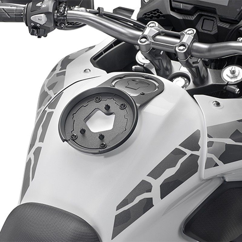 Base Tanklock BF44 para Honda CB 500 X (modelos 2019-2021). Fabricada en acero inoxidable y plástico resistente, ofrece una fijación segura para portaequipajes y accesorios. Diseño geométrico con ranuras de montaje precisas. Ideal para motociclistas que buscan una solución robusta y duradera para transportar equipaje sin comprometer la estética de