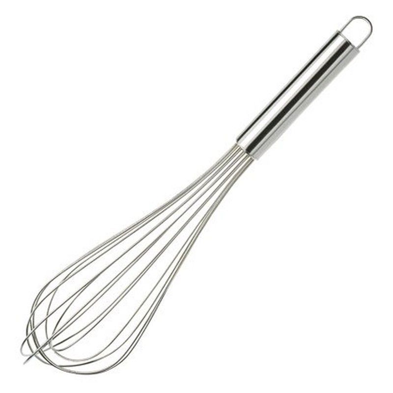 Batidor tubo de 25 cm en acero inoxidable 18/8, ideal para mezclar, batir y montar ingredientes en la cocina. Resistente, duradero y fácil de limpiar. Perfecto para reposteros, cocineros y amantes de la cocina casera. Incluye anilla para colgar y mantener el orden en tu cocina.