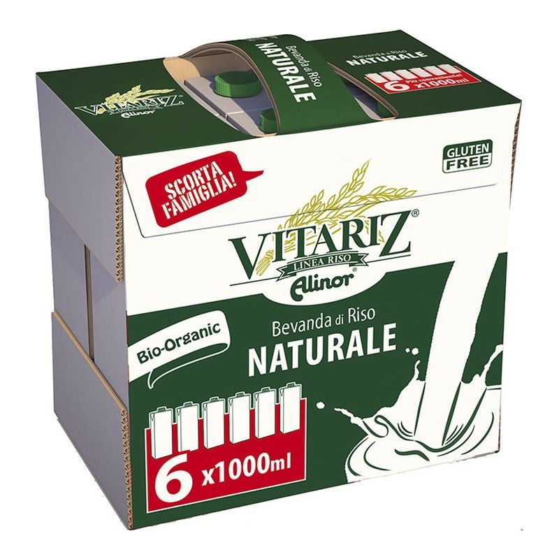 Pack familiar de 6 botellas de 1 litro de bebida de arroz natural Vitariz, orgánica y sin gluten. Ideal para consumir diariamente, con un sabor suave y natural. Embalaje práctico y económico para toda la familia. Perfecta para quienes buscan alternativas vegetales y saludables.