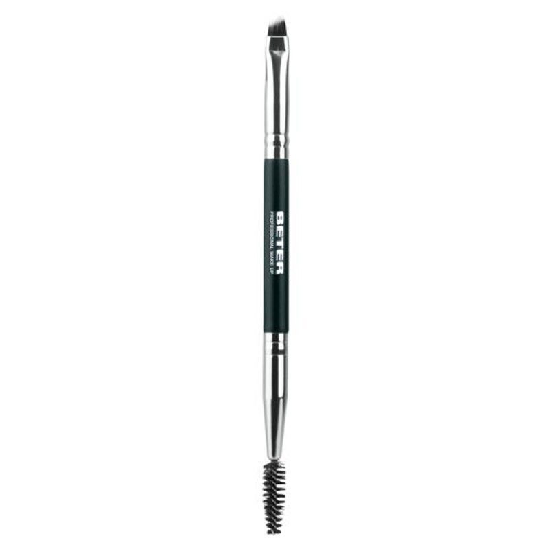 Pincel para cejas Beter R-22238 con doble extremo: punta fina para definir y cepillo espiral para peinar y difuminar. Ideal para un maquillaje preciso y natural. Fabricado con fibra sintética de alta calidad y manija de plástico resistente. Perfecto para uso diario en rutinas de belleza.