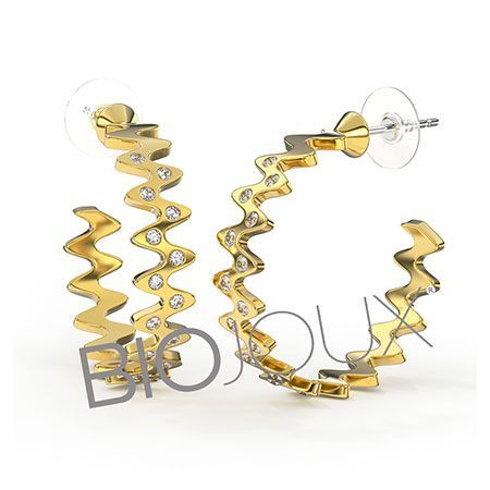 Pendientes hipoalergénicos Biojoux Sariel de 30mm con diseño ondulado en acabado dorado y cristales incrustados. Ideales para adultos que buscan joyería elegante y moderna. Fabricados en metal de alta calidad, con cierre seguro y acabado brillante. Perfectos para complementar cualquier look diario o especial.