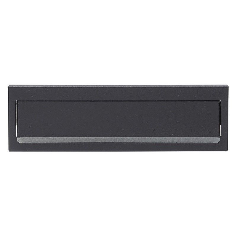 Bocacartas de 248x73 mm en color negro, fabricado en metal con acabado mate. Diseño minimalista y moderno ideal para casas o oficinas. Fácil instalación y resistente al uso diario. Perfecto para mantener el correo organizado con estilo.