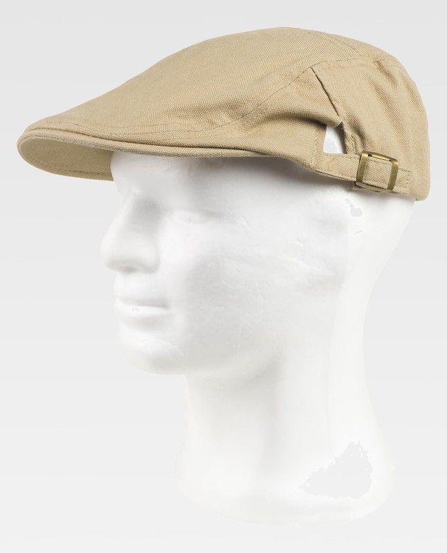 Boina inglesa en tejido lona beige, ideal para uniformes de servicio de comida o uso diario. Con visera plana y ajuste trasero con hebilla metálica dorada, ofrece comodidad y estilo clásico. Fabricada en lona resistente, perfecta para profesionales que buscan un look profesional y duradero. Adecuada para adultos.