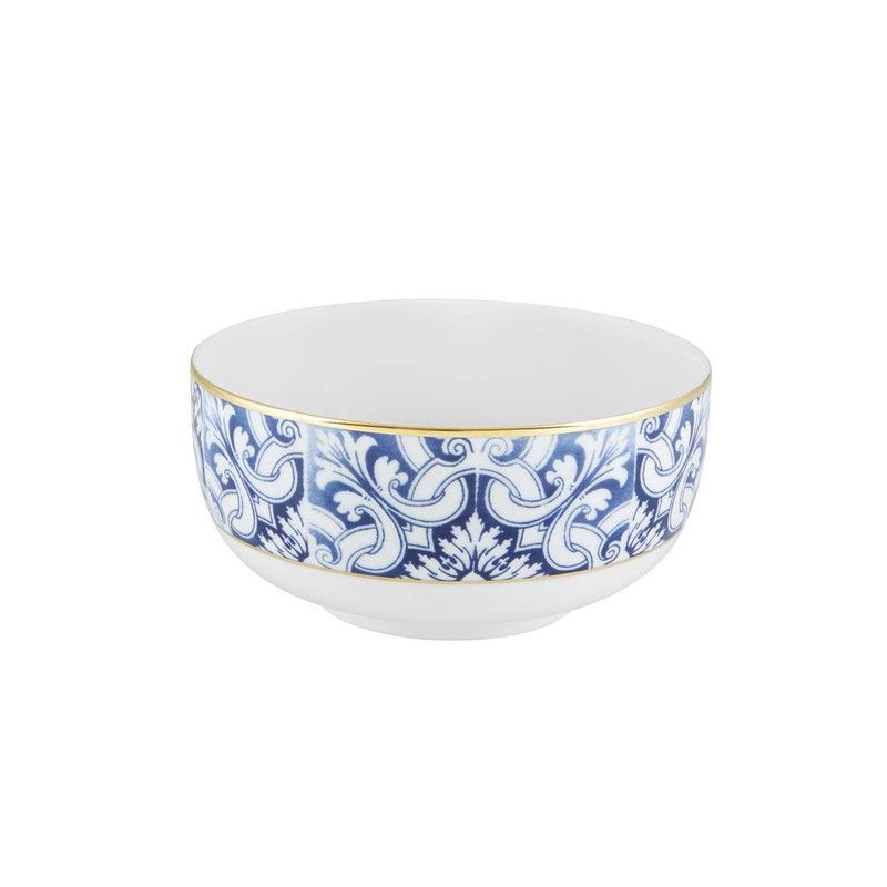 Bol decorativo de porcelana Transatlântica, ideal para servir postres o como pieza de decoración en tu hogar. Con un elegante diseño en azul y blanco con detalles dorados y un patrón paisley sofisticado, aporta un toque clásico y refinado a tu mesa. Fabricado en porcelana de alta calidad, es resistente y fácil de limpiar. Perfecto para amantes de l