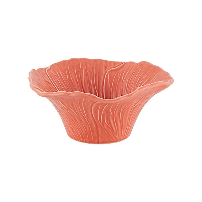 Bol decorativo Alcea de loza en color coral, ideal para adornar mesas, estanterías o como centro de mesa. Con diseño floral y bordes ondulados, aporta un toque elegante y natural a tu hogar. Fabricado en loza de calidad, es resistente y fácil de limpiar. Perfecto para uso decorativo o como recipiente para frutas, dulces o pequeños objetos. Dimensio