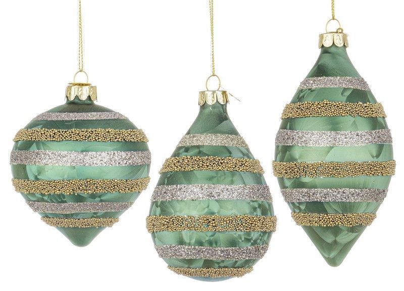 Bolas de Navidad de cristal en tonos verde, dorado y plateado, con elegantes franjas decorativas de purpurina. Ideales para adornar tu árbol de Navidad con un toque sofisticado y festivo. Fabricadas en vidrio de alta calidad, estas bolas aportan brillo y estilo a tu decoración navideña. Perfectas para adultos que buscan detalles refinados en sus ce