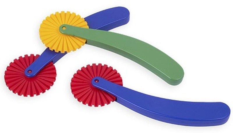 Juego de 3 ruedas cortadoras para manualidades, ideales para niños y amantes del arte creativo. Fabricadas en plástico resistente, con mangos ergonómicos en verde y azul y ruedas dentadas en amarillo y rojo. Perfectas para decorar galletas, masa de modelar, papel o cartón. Fáciles de usar y seguras para proyectos artesanales en casa o en clase.