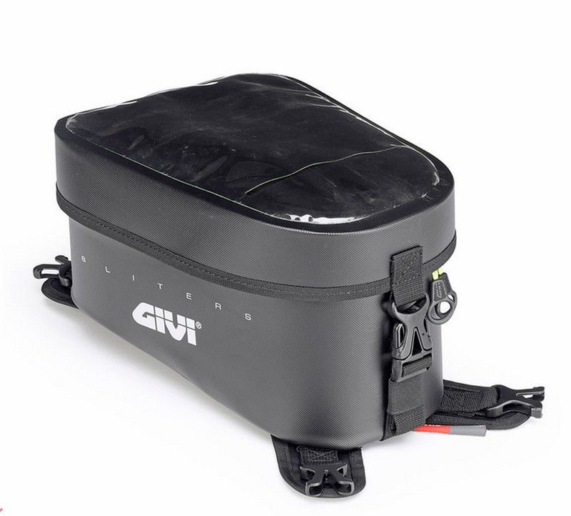 Bolsa de depósito impermeable Givi grt716, de 6 litros, ideal para motociclistas que buscan almacenamiento seguro y resistente. Fabricada en poliéster y goma, con interior amarillo y cierre hermético. Incluye correas de sujeción para montaje seguro en el depósito. Perfecta para viajes cortos o diarios con protección contra la lluvia y el polvo.