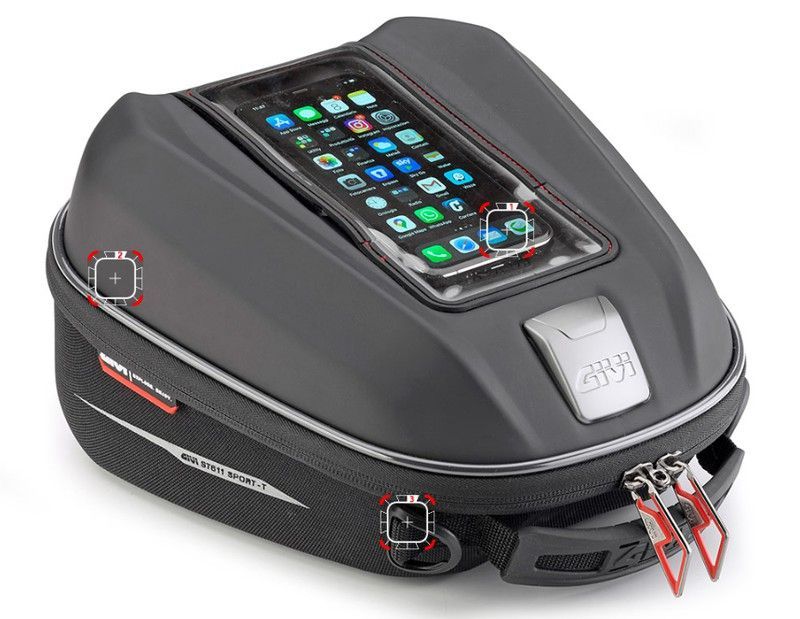 Bolsa depósito TANKLOCK ST611+ de 6 L, ideal para motocicletas. Fabricada en plástico resistente y textil duradero, incluye ventana transparente para usar el móvil sin abrir la bolsa. Cierre seguro con llaves y diseño ergonómico. Perfecta para viajes y uso diario en moto.