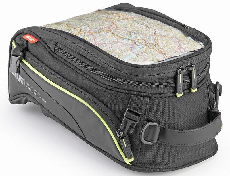 Bolsa específica para Honda NC750X (modelos 2016-2020) con base adaptada para una instalación segura. Fabricada en lona y poliéster resistente, cuenta con cremalleras duraderas y detalles en verde fluorescente para mayor visibilidad. Incluye compartimento superior con mapa visible y correas de sujeción con hebillas metálicas. Ideal para viajes y us