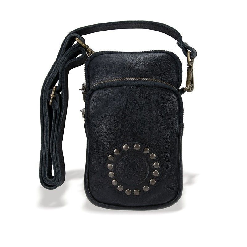 Bolso bandolera PLATA DE PALO modelo BOTER para hombre, fabricado en cuero negro de alta calidad. Diseño elegante y funcional con correa ajustable, ideal para uso diario. Destaca por su detalle circular con remaches metálicos y logotipo grabado. Cómodo, resistente y con estilo urbano. Perfecto para hombres que buscan combinación de estilo y practic