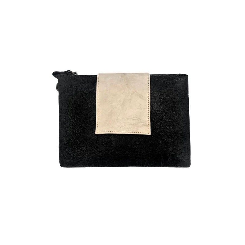 Bolso Magento ACS029N PLATA DE PALO en piel negra con solapa rectangular beige, cierre con cremallera lateral. Diseño elegante y sofisticado, ideal para looks urbanos y formales. Fabricado en piel de alta calidad, combina estilo y funcionalidad. Perfecto para mujeres que buscan un accesorio versátil y duradero.