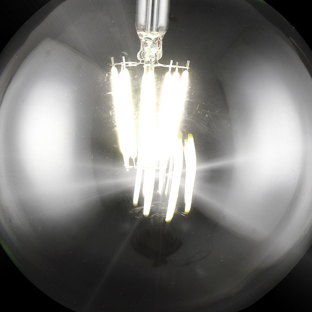 Bombilla LED globo de 8W con 880 lúmenes y luz blanca cálida (4000K), ideal para iluminación decorativa en hogar, terrazas o espacios con estilo vintage. Diseño transparente con filamentos LED visibles, base E-27 y acabado en vidrio y metal. Ahorra energía y dura más que las bombillas tradicionales.