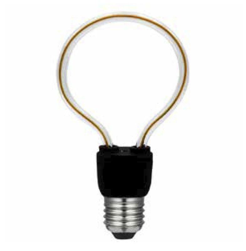 Bombilla Siluet Globe con rosca E27, ideal para iluminación decorativa en hogar y jardín. Diseño moderno con filamento en espiral dorado visible a través del vidrio transparente. Base metálica plateada y conector negro. Perfecta para crear ambientes cálidos y estéticos en lámparas, apliques o focos. Calidad duradera y estilo contemporáneo.