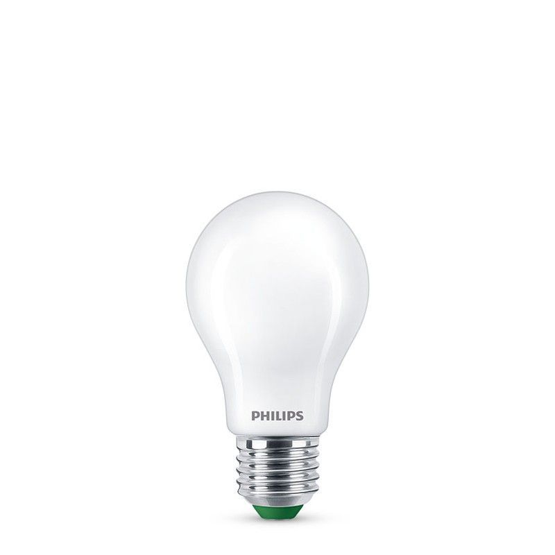 Bombilla LED Philips U. Efficient E27 de 4W con 840 lúmenes y luz cálida de 2700K. Diseño clásico y eficiente, ideal para iluminar tu hogar con ahorro energético. Perfecta para lámparas y apliques con casquillo E27. Calidad Philips garantizada.