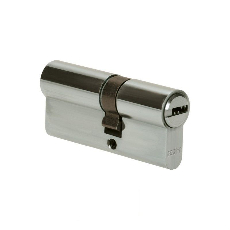 Bombín de seguridad EDM de 70 mm (40+30 mm) con leva corta y acabado niquelado, fabricado en acero inoxidable para mayor resistencia. Incluye 5 llaves de seguridad. Ideal para puertas interiores y exteriores que requieren protección confiable. Diseño compacto y duradero, perfecto para instalaciones en hogares y negocios.