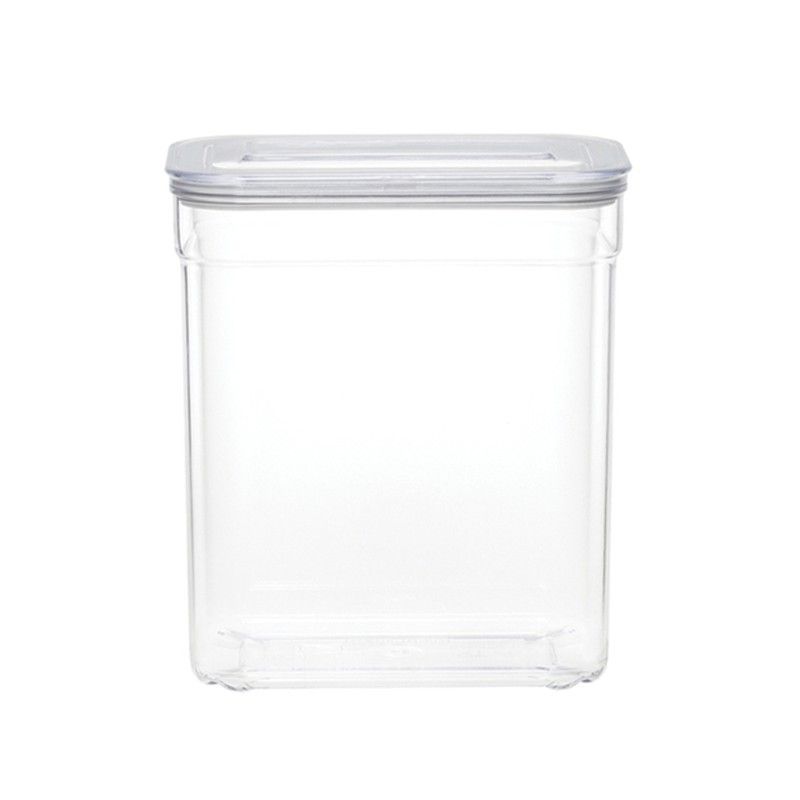 Bote hermético para cocina de plástico transparente, ideal para almacenar alimentos, cereales, legumbres o especias. Con tapa segura y diseño rectangular, mantiene los alimentos frescos y organizados. Perfecto para despensa, nevera o cocina. Medidas: 15x9.5x17 cm.