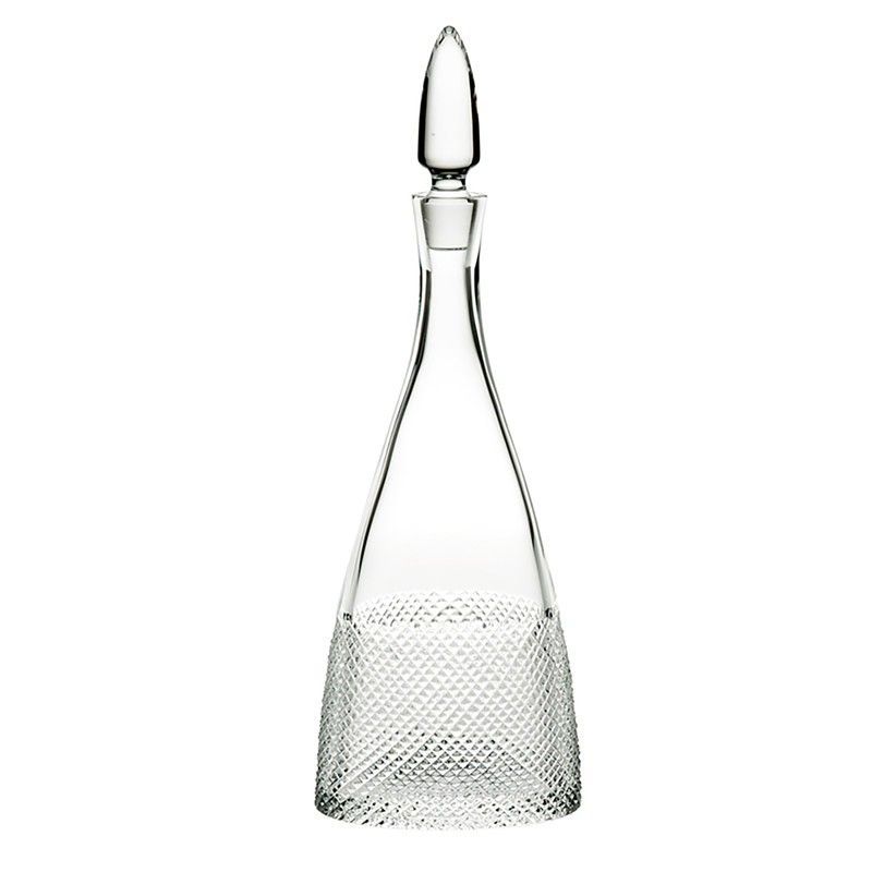 Botella de vino de cristal Splendour, ideal para servir y conservar vinos con estilo. Fabricada en cristal de alta calidad, presenta un diseño elegante con textura de malla en la base y tapón puntiagudo. Perfecta para ocasiones especiales o como pieza decorativa en tu hogar. Dimensiones: 7,4x13,5x38,5 cm.