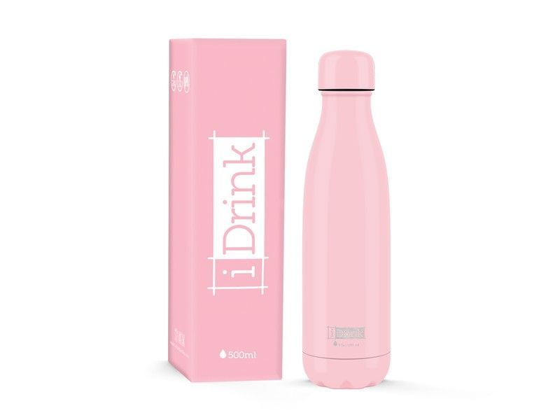 Botella térmica de 500 ml en color rosa, fabricada en acero inoxidable de alta calidad. Ideal para mantener tus bebidas calientes o frías durante horas. Diseño elegante y compacto, perfecta para llevar al trabajo, al gimnasio o en tus desplazamientos diarios. Incluye caja de presentación rosa con el logo 'iDrink'.