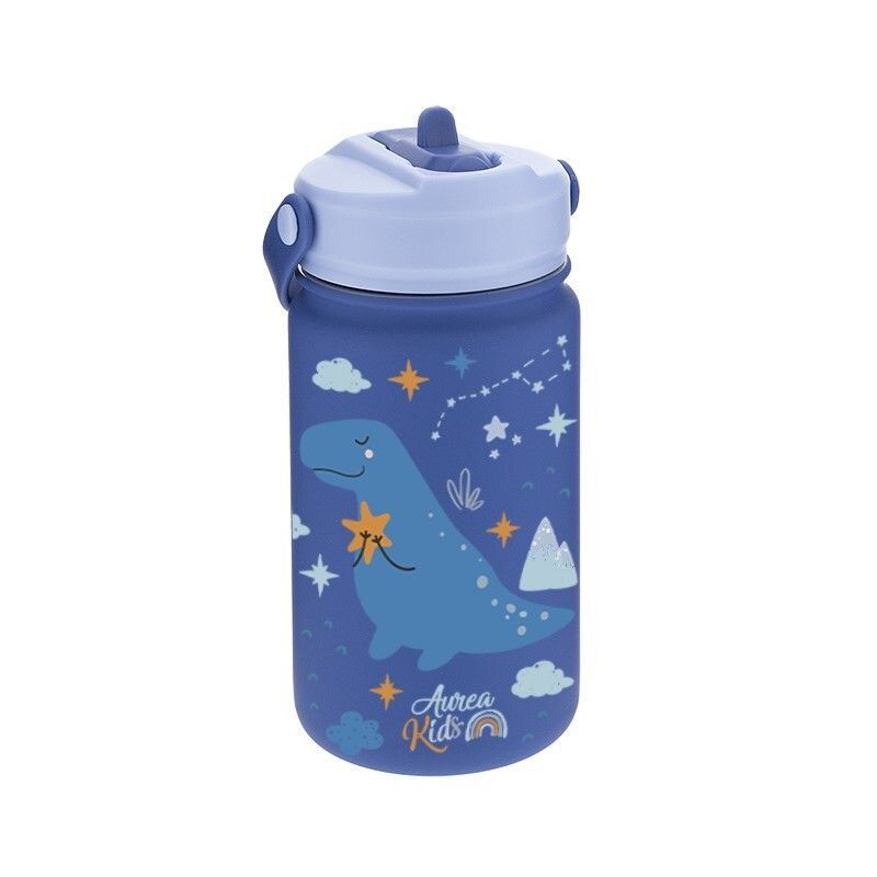 Botella termo infantil de 330 ml con pajita, ideal para niños. Diseño divertido con dinosaurio y estrellas en tonos azules. Fabricada en plástico seguro, con tapa antifuga y asa para llevar fácilmente. Perfecta para el colegio, excursiones o actividades diarias. Mantén la bebida fresca durante horas.