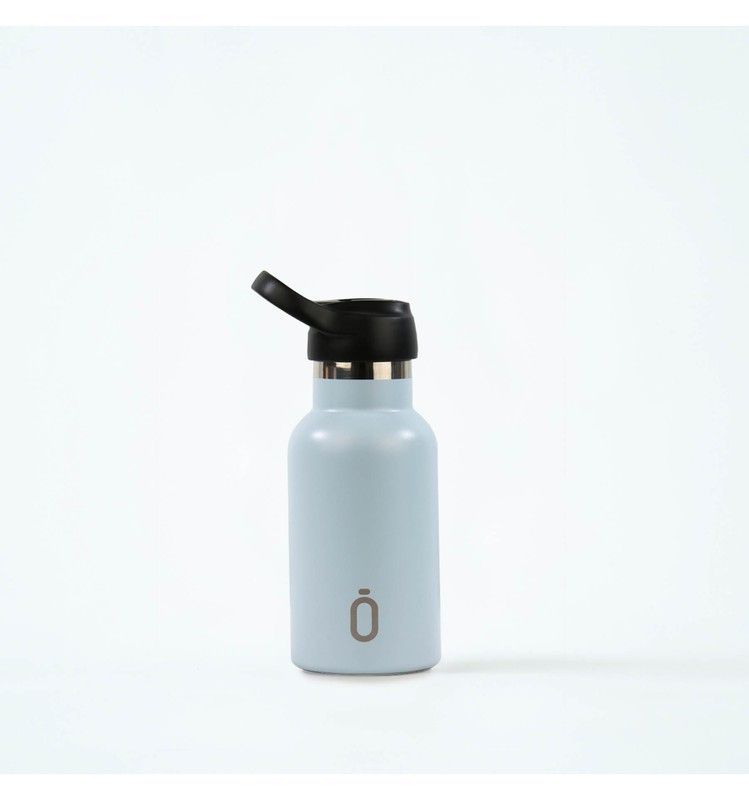 Botella termo Runbott de 350 ml en color cielo empolvado, ideal para mantener tus bebidas a la temperatura perfecta durante todo el día. Fabricada en acero inoxidable de alta calidad, cuenta con tapón sport negro con pico para beber cómodamente. Perfecta para deportistas, viajeros o cualquier persona activa que busca estilo y funcionalidad. Diseño