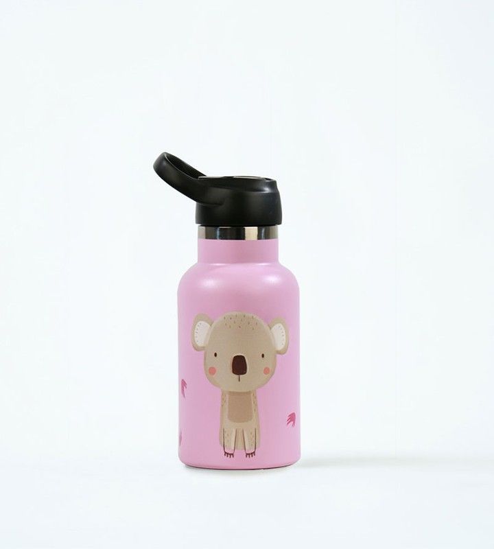 Botella termo Runbott de 350 ml con diseño infantil de koala, ideal para niños. Fabricada en acero inoxidable, con tapón sport negro para un uso seguro y cómodo. Perfecta para llevar agua o bebidas a la escuela, al parque o en viajes. Diseño divertido y color rosa suave que encantará a los más pequeños.