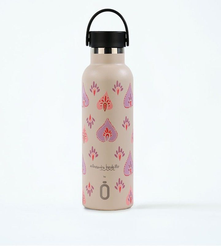 Botella termo Runbott Alexandra Bordallo India Topo de 600 ml, fabricada en acero inoxidable para mantener tus bebidas a la temperatura ideal. Diseño elegante con estampado paisley en tonos rosa y morado, ideal para el día a día. Con tapa negra y asa práctica, perfecta para llevar al trabajo, al gimnasio o en tus desplazamientos. Calidad duradera y