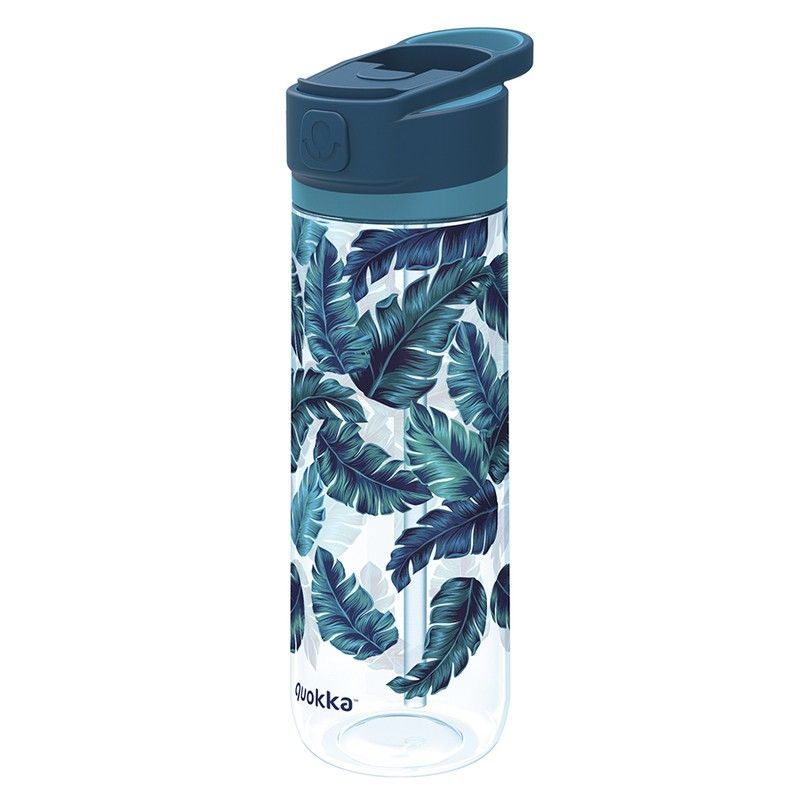 Botella Tritán Jungle Quokka de 83 cl con diseño tropical de hojas en tonos azules, ideal para llevar agua o bebidas durante el día. Fabricada en plástico resistente y seguro, con tapa de cierre flip para mayor comodidad. Perfecta para deporte, trabajo o viajes, mantén tus líquidos frescos con estilo.