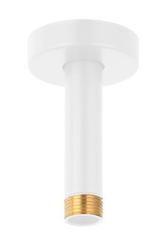 Brazo de ducha de techo redondo de 100 mm, acabado en blanco con detalles dorados. Fabricado en acero inoxidable y plástico resistente, ideal para baños modernos. Fácil instalación con conexión de 1/2 pulgada. Diseño minimalista y elegante que combina funcionalidad y estilo.