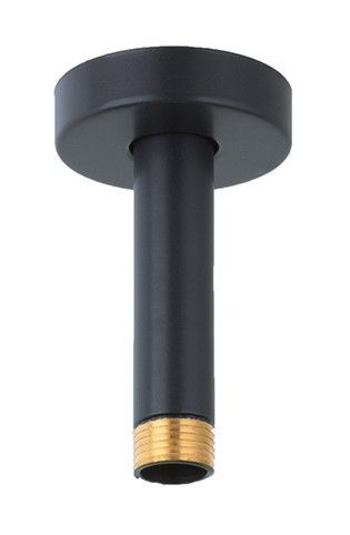 Brazo de ducha de techo redondo de 100 mm con conexión de 1/2 pulgada, fabricado en metal con acabado negro mate y detalle dorado en la rosca. Ideal para baños modernos y minimalistas, ofrece una instalación sencilla y un diseño elegante que combina funcionalidad y estilo. Perfecto para complementar griferías de diseño contemporáneo.