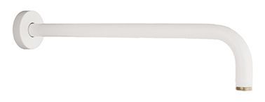 Brazo de ducha de pared de 350 mm con ángulo de 90º, acabado blanco mate y extremo dorado. Fabricado en acero inoxidable resistente a la corrosión. Ideal para instalaciones de ducha en baños modernos. Fácil montaje y diseño elegante que combina funcionalidad y estilo.