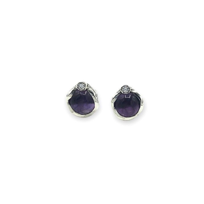 Elegantes pendientes tipo botón de la colección 'La Bruixeta', fabricados en plata de ley con un centro de cuarzo rutilado de tono morado profundo y un toque de circonita en la parte superior. Diseño sofisticado y femenino, perfectos para mujeres que buscan joyas con personalidad. Ideal para looks diarios o ocasiones especiales, combinan elegancia