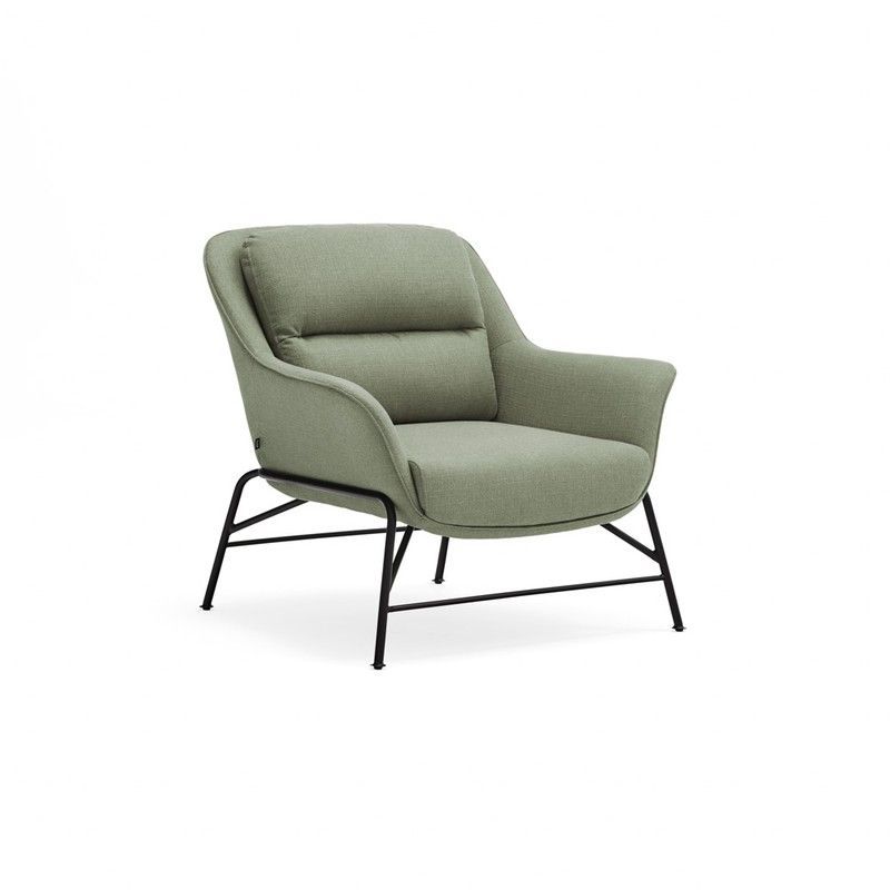 Butaca Sadira en tejido verde grisáceo, ideal para espacios modernos y confortables. Con estructura metálica negra y diseño ergonómico, ofrece un estilo sofisticado y comodidad óptima. Perfecta para salones, oficinas o rincones de lectura. Dimensiones: 88 x 84 x 87 cm.