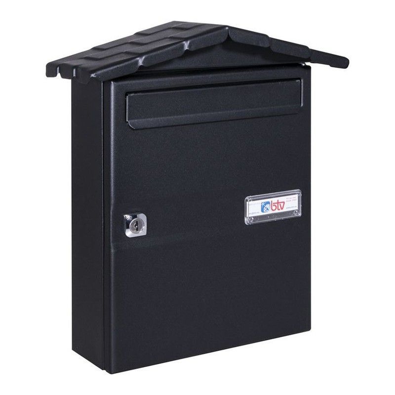 Buzón exterior de diseño chalet en color negro, fabricado en metal resistente para uso en exteriores. Ideal para casas y viviendas con estilo clásico o rústico. Incluye cerradura para mayor seguridad y ranura de acceso para el correo. Fácil instalación en paredes exteriores. Diseño elegante y funcional para proteger tu correspondencia.