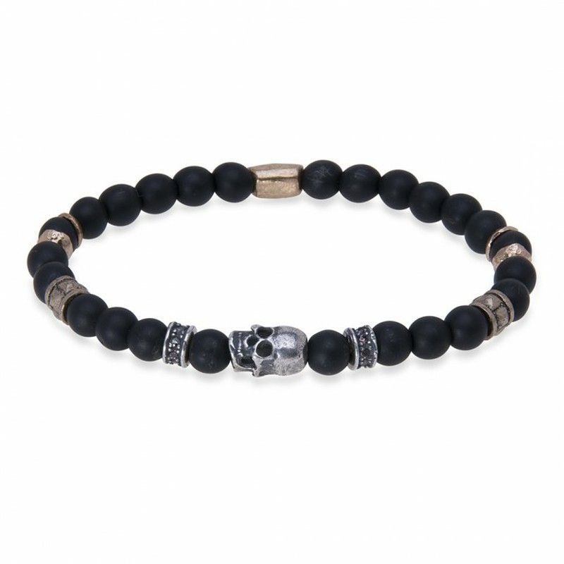 CAB76B Pulsera Plata de Palo de plata con calavera y ónix