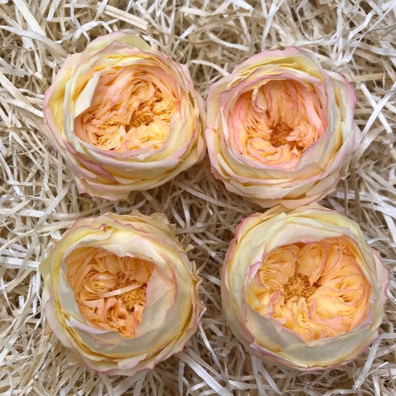 Caja con 4 cabezas de rosa peonía preservada, ideales para decoración de interiores, eventos especiales o como regalo elegante. Con tonos suaves de crema, rosa y naranja, estas flores conservadas mantienen su belleza natural y durabilidad. Perfectas para centros de mesa, arreglos florales o decoración de hogar. Incluye paja decorativa para un toque