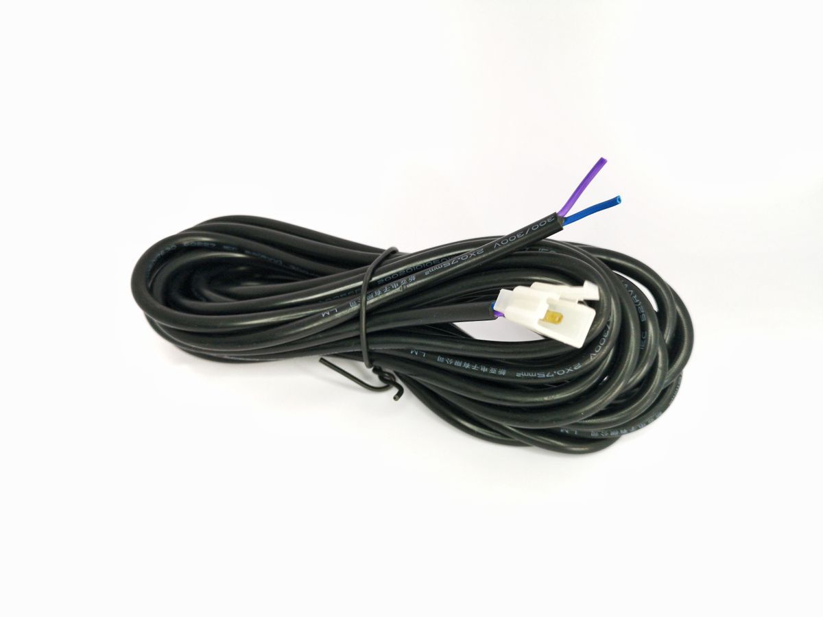 Cable sensor de nivel para multivalvula Rotarex, ideal para sistemas de control de nivel en vehículos motorizados. Fabricado con cable negro resistente y conectores blancos de plástico, con hilos azul y morado para una conexión precisa. Perfecto para mantenimiento y sustitución en sistemas de válvulas múltiples.