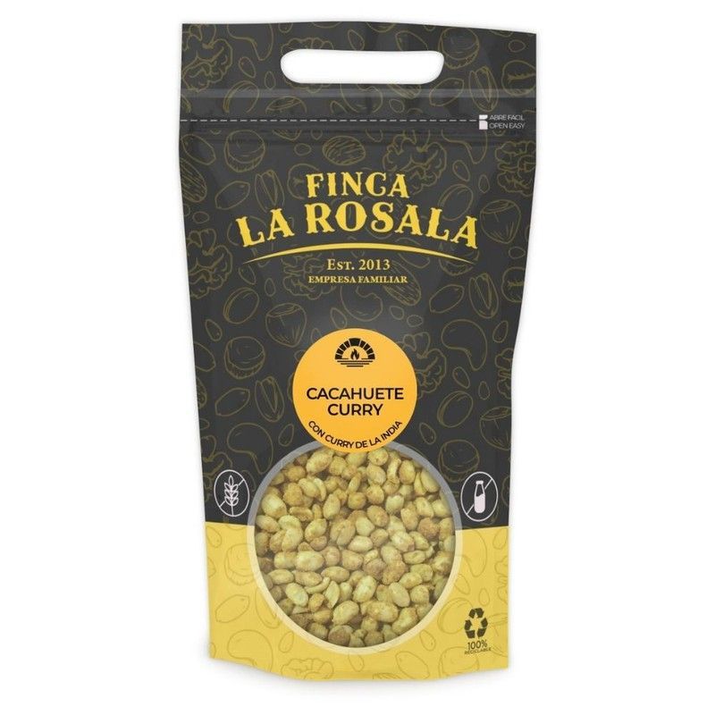 Cacahuete con Curry de Finca La Rosala, en bolsa de 500 grs. Ideal para disfrutar como snack saludable y sabroso. Con curry de la India, perfecto para amantes de sabores intensos. Embalaje práctico con ventana transparente que muestra el contenido. Producto de empresa familiar desde 2013.