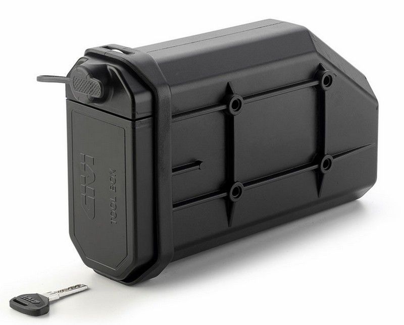 Caja de herramientas Givi S250 para moto, ideal para almacenar herramientas y accesorios de forma segura entre el portamaletas lateral y el carenado. Fabricada en plástico resistente, con cierre con llave para mayor seguridad. Diseño compacto y funcional, perfecta para motociclistas que necesitan organización y protección en sus viajes.