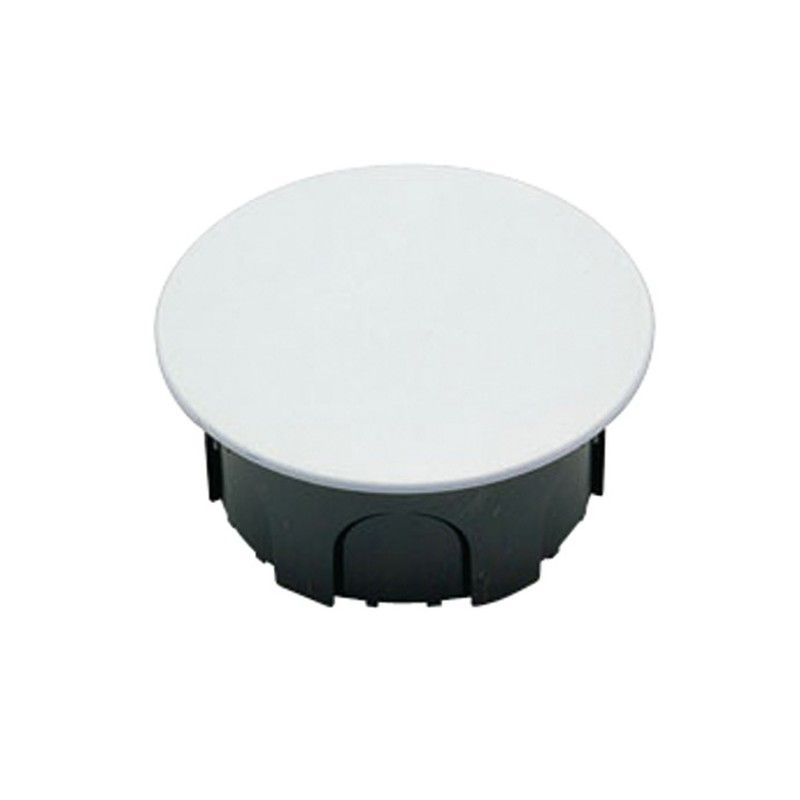 Caja empalme con garra de 100x50 mm, fabricada en plástico resistente. Ideal para instalaciones eléctricas en paredes o techos. Diseño circular con tapa blanca y cuerpo negro, fácil montaje gracias a su sistema de garra. Perfecta para empalmes seguros y organizados en obras y reformas.
