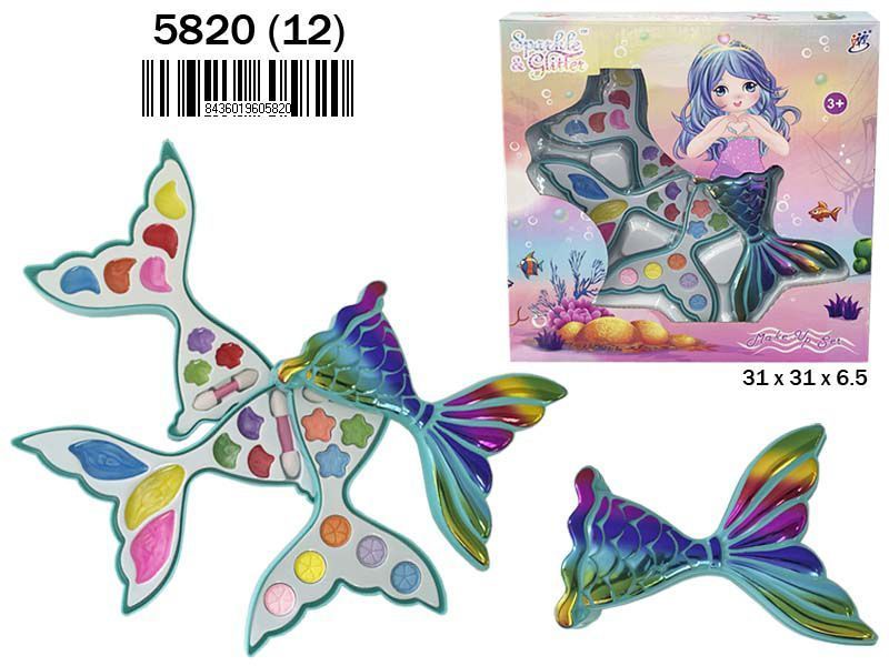 Caja de maquillaje sirena con diseño de tres pisos, ideal para niñas que aman el mundo submarino. Con colores brillantes y detalles acuáticos, incluye compartimentos en forma de cola de sirena para guardar productos de maquillaje. Perfecta para juegos de rol y fantasía, fomenta la creatividad y el juego imaginativo. A partir de 3 años.