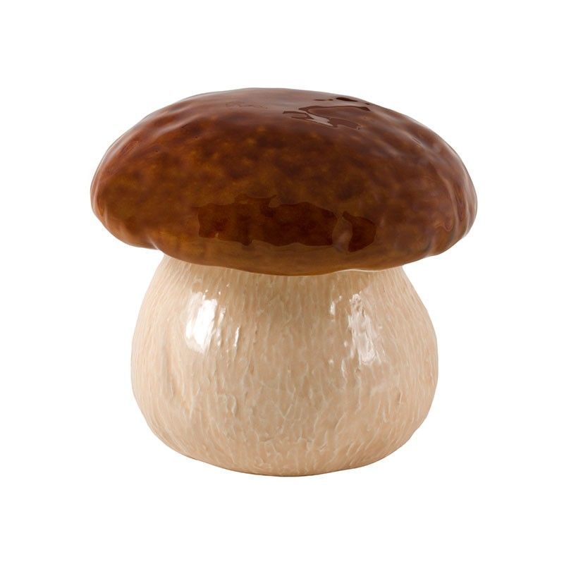 Caja decorativa en forma de seta, fabricada en loza de alta calidad. Con acabado en beige y marrón, imita fielmente la textura natural de una seta. Ideal para decorar estanterías, mesas o rincones del hogar con un toque rústico y elegante. Perfecta como caja de almacenaje para pequeños objetos o como pieza decorativa única.