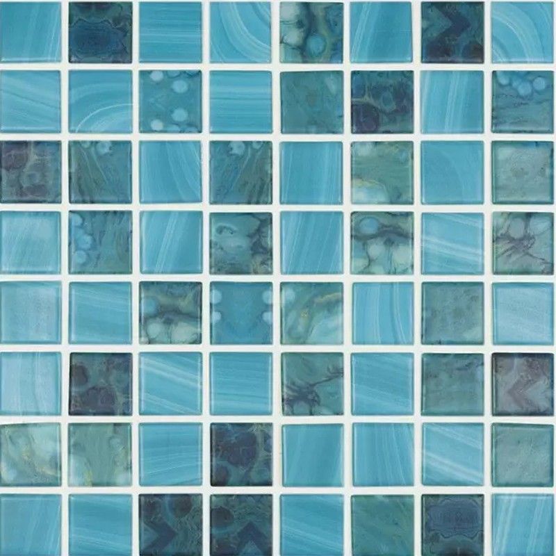 Baldosas de vidrio Nature Sky Mate en malla de 38x38 cm, ideales para baños, cocinas o piscinas. Con acabado mate y diseño abstracto en tonos azules, ofrecen un aspecto elegante y moderno. Fáciles de instalar y resistentes al agua, perfectas para espacios húmedos. Cada caja contiene 2 m².