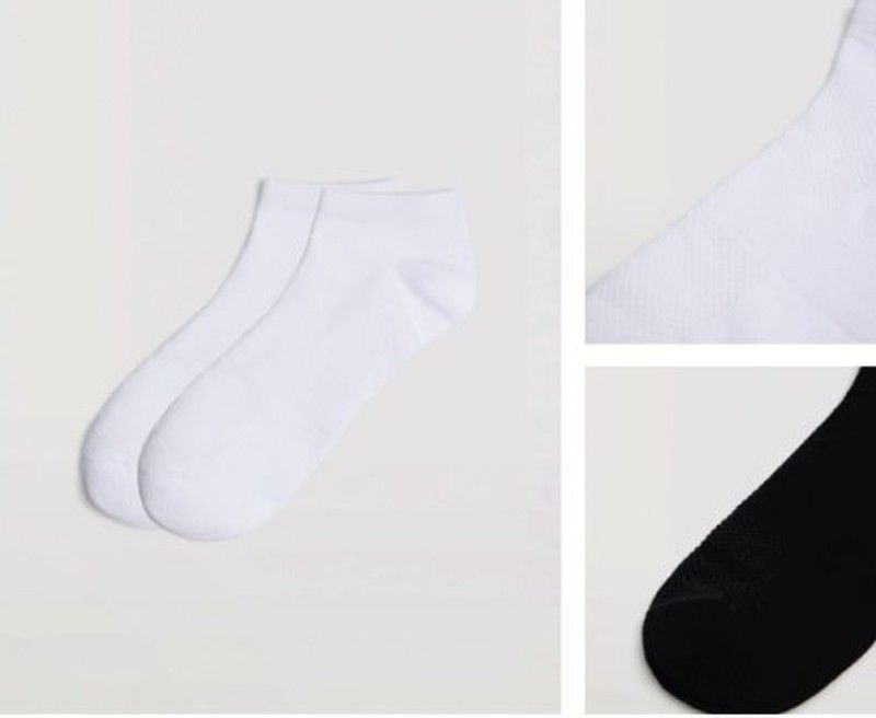 Calcetines invisibles para adultos en blanco y negro, ideales para usar con zapatos bajos o zapatillas. Confeccionados en mezcla de algodón y poliéster para mayor comodidad y transpirabilidad. Diseño liso y ajuste perfecto sin marcas, con costura plana en dedos y talón. Pack de 3 pares (blanco, gris y negro) para un look elegante y discreto en cual