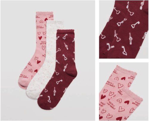 Calcetines para mujer con diseño divertido y romántico, en tres colores: rosa, blanco y marrón. Estampado con corazones, siluetas de botellas y el texto 'FOLLOW YOUR HEART'. Confeccionados en mezcla de algodón y poliéster, ideales para un look casual y cómodo. Perfectos para regalar o usar diariamente con estilo.