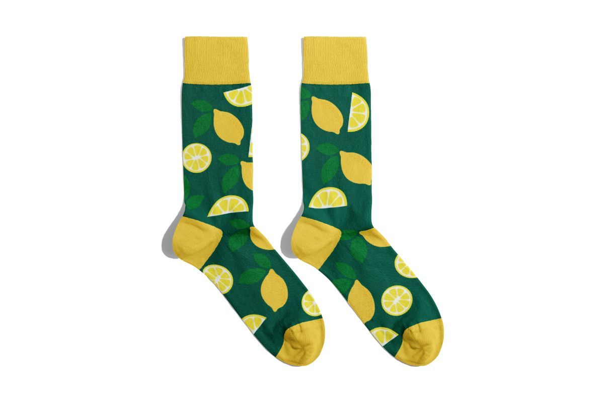 Calcetines divertidos con estampado tropical de limones y hojas verdes, ideales para regalar. Hechos en mezcla de algodón y poliéster, ofrecen comodidad y estilo. Talla M (36-40), perfectos para adultos que buscan un toque fresco y original en su vestimenta diaria.