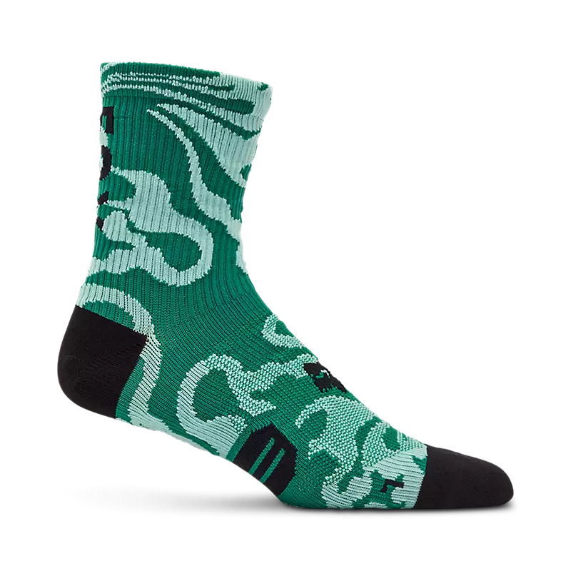 Calcetines FOX Ranger Frequency 6ββ (15 cm) ideales para ciclismo de montaΓ±a. Con diseΓ±o de camuflaje en verde y blanco, punta y talΓ³n en negro, y logotipo FOX. Fabricados con mezcla de poliΓ©ster, algodΓ³n y elastano para mΓ‘xima comodidad, transpirabilidad y durabilidad. Perfectos para ciclistas que buscan rendimiento y estilo en sus salidas MTB.