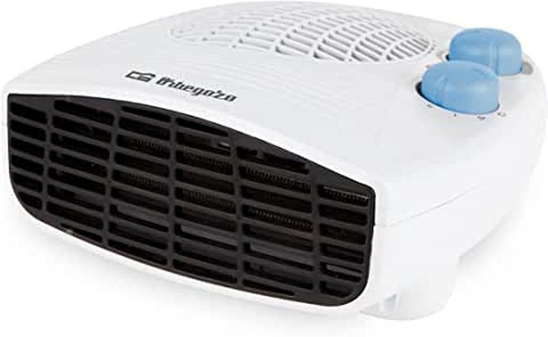 Calefactor Orbegozo FH 5127 de diseño compacto y eficiente, ideal para espacios pequeños. Con acabado en plástico blanco y detalles en negro y azul, cuenta con perillas para ajustar temperatura y ventilación. Perfecto para uso doméstico en habitaciones, oficinas o salas. Fácil de usar y mantener.