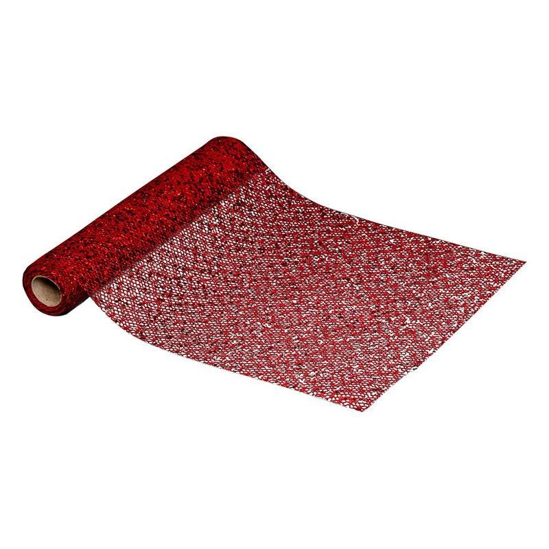 Camino de mesa rojo con efecto brillante y textura de purpurina, ideal para decoraciones festivas y estacionales. Fabricado en poliéster de alta calidad, añade un toque elegante y festivo a tu mesa. Perfecto para celebraciones, Navidad, cumpleaños o eventos especiales. Medidas: 28x300 cm.